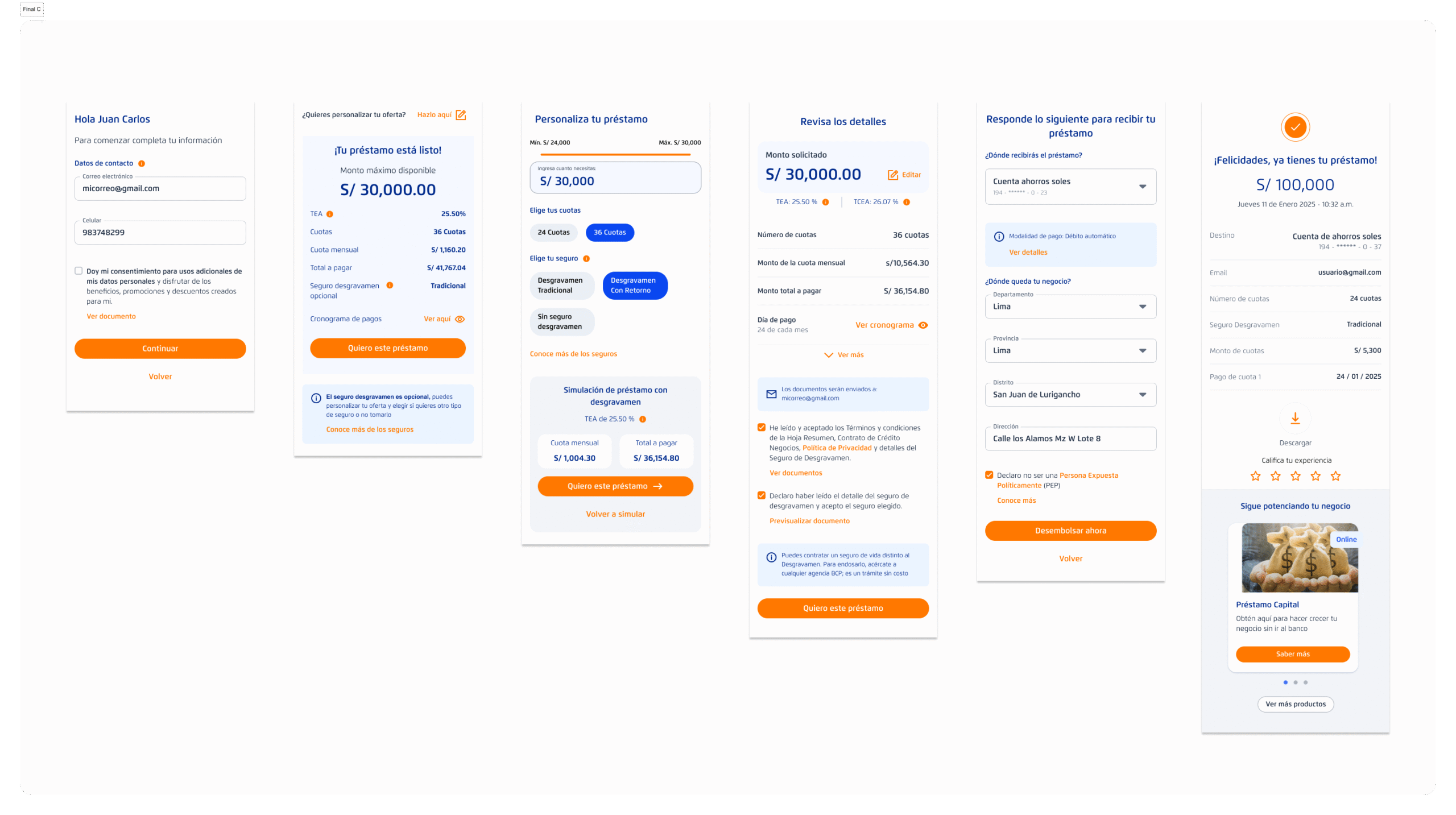 Los hallazgos orientaron las siguientes iteraciones del flujo hacia dos ejes: visibilidad de información clave y posibilidad de personalización, priorizando mensajes claros sobre tasas, montos y plazos.