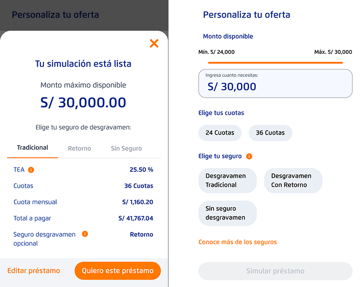 - Quieren que el rango de monto disponible, los seguros disponibles y la tasa de interés se muestren de manera directa y comprensible .