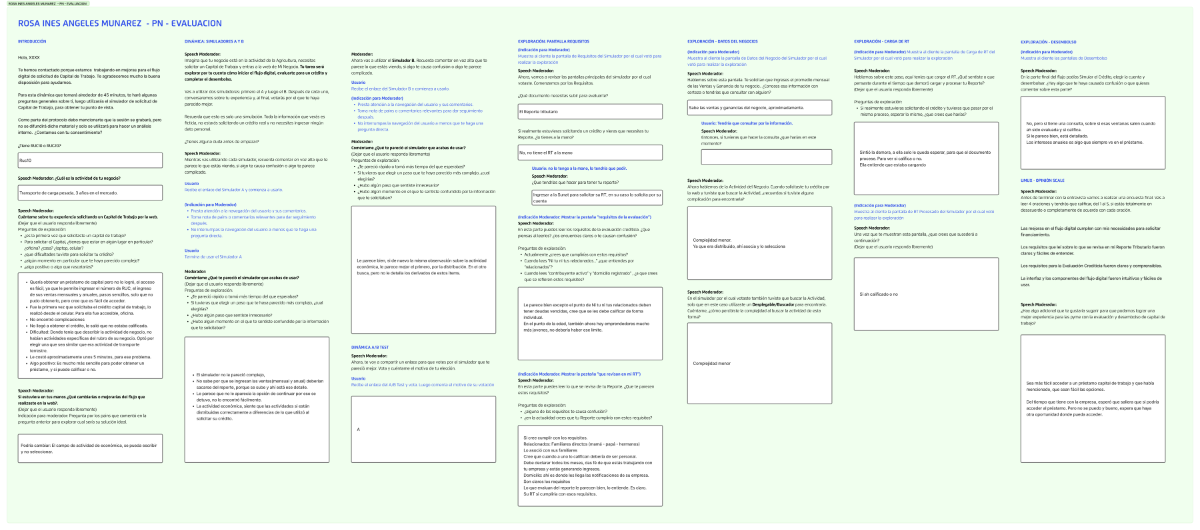 Se realizaron entrevistas moderadas con clientes reales para entender cómo experimentan el proceso de solicitar un préstamo para negocios. Se incluyó tanto a quienes accedían por primera vez a un crédito como a usuarios con experiencia previa, lo que permitió comparar expectativas y percepciones sobre el procedimiento digital.